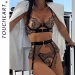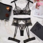 Two-piece women’s lingerie set: thong, sheer lolita lingerie, romantic set, sexy bra and panty set. Women’s underwear.