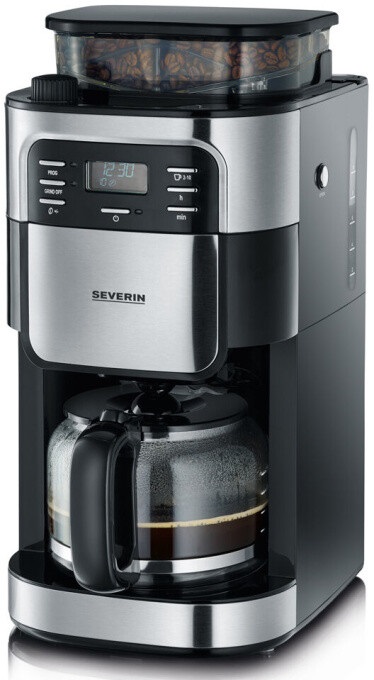 Кофемашина с кофемолкой KA 4810 Severin 1000 Вт / на 10 чашек, чёрная/серая (*повреждена упаковка)
