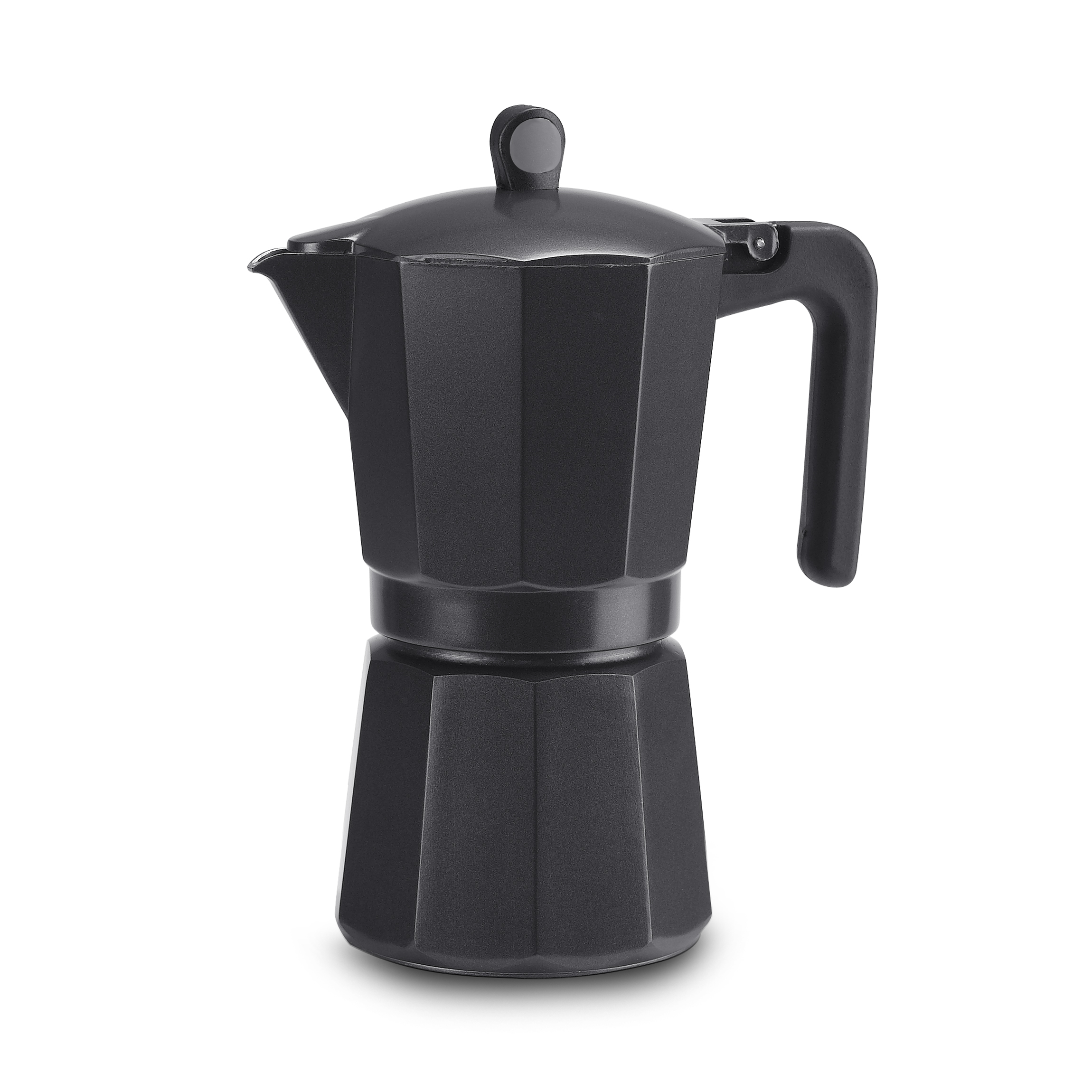Эта кофеварка оснащена уникальной системой Full Induction без отверстий, что повышает совместимость со всеми типами индукционных плит. Она также имеет эргономичную бакелитовую ручку с серой вставкой и полированную, бесшовную внутреннюю поверхность для легкой очистки. Кроме того, ее элегантный черный дизайн позволяет приготовить идеальную чашку кофе всего за несколько минут.