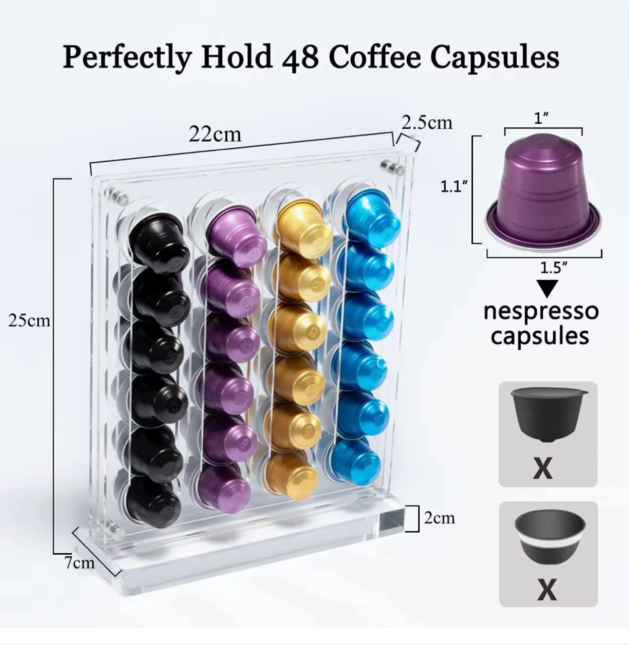 Прозрачный акриловый держатель для кофейных капсул – вмещает 40 капсул Nespresso Dakar