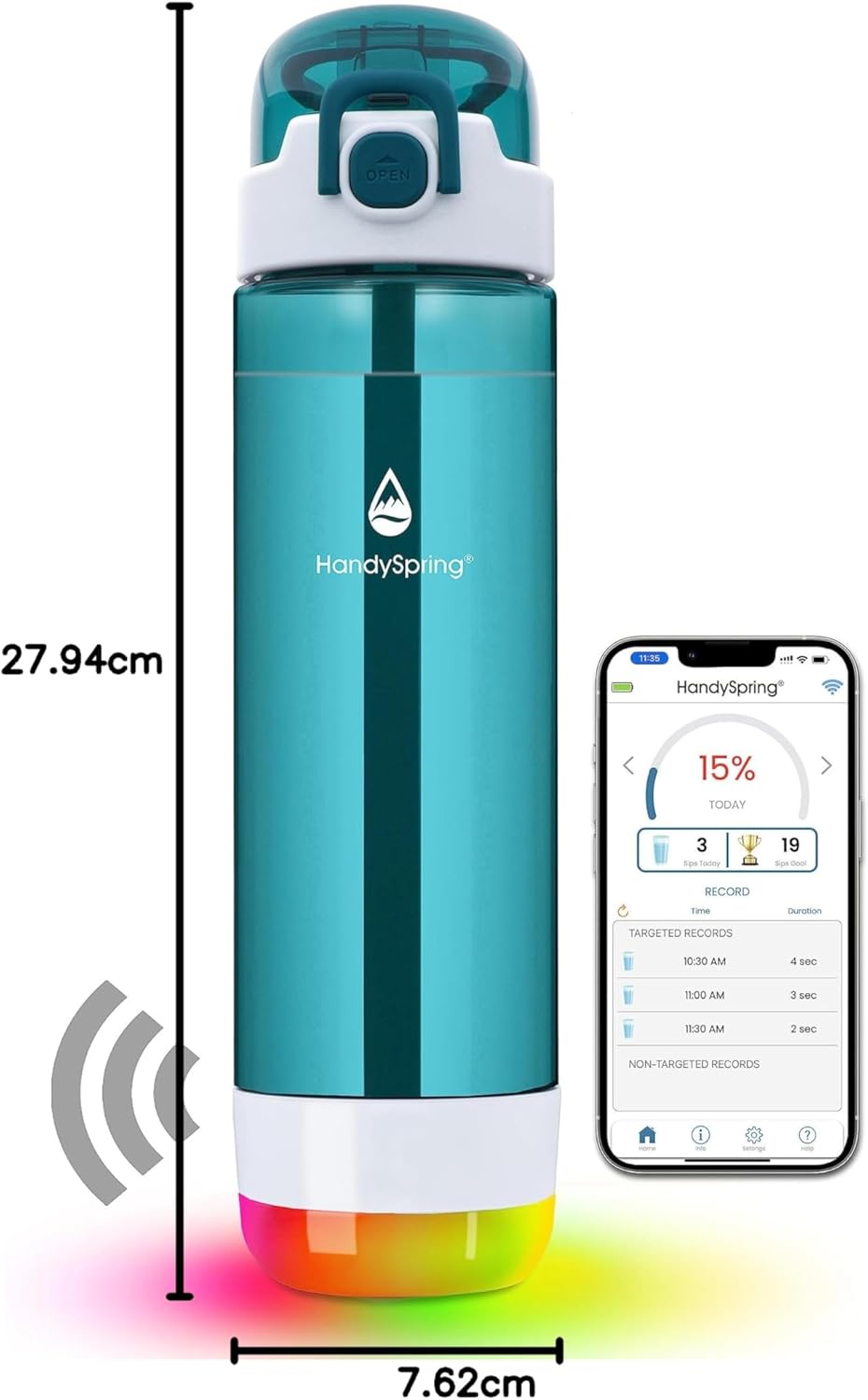 Säilita hüdreeritus kogu päeva vältel HANDYSPRINGIGA – nutikas veepudel, mis tuletab sulle LED-tulede ja helidega meelde vee joomist. See vee meeldetuletuspudel muudab vee joomise nauditavamaks ja lihtsamaks.