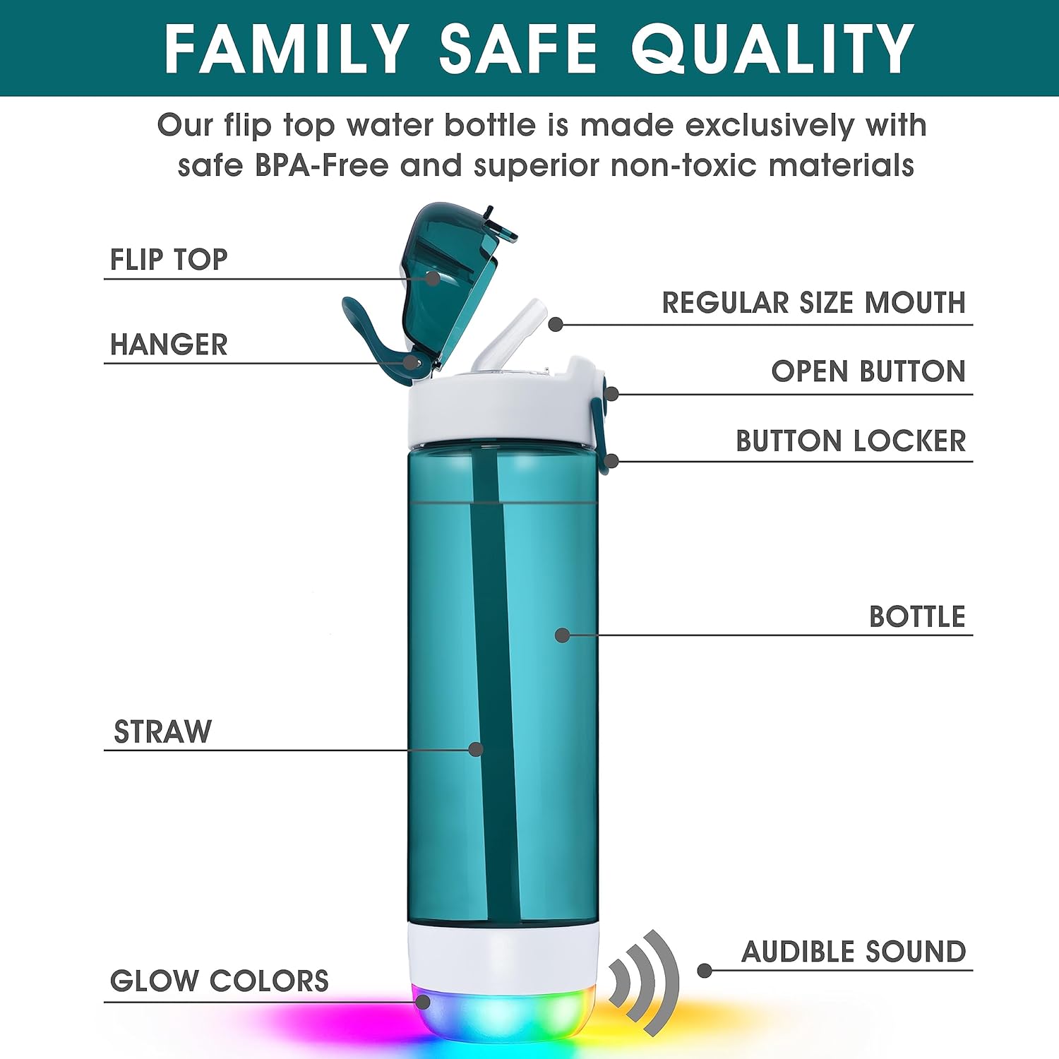 Nutikas veepudel joomise meeldetuletuse, valgus- ja heliefektidega, veetarbimise jälgimisega, laetav, tritaanplastist, kõrrega, 740 ml, roheline.